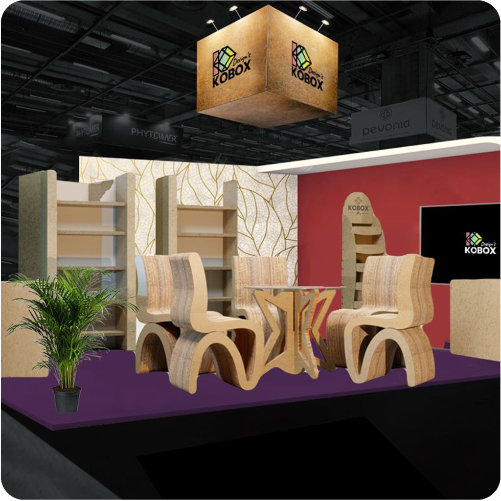 Pour les solutions d’ameublement, d’aménagement et de décoration en carton  de vos évènements.